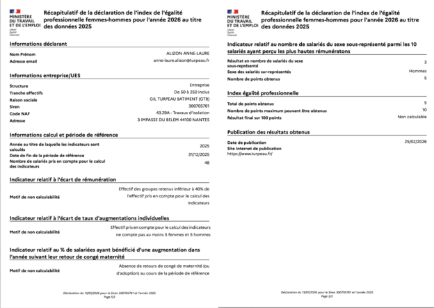 Index égalité professionnelle femmes-hommes 2024 14/02/2024 Index égalité professionnelle femmes-hommes Gil Turpeau Bâtiment 2024 LIRE LA SUITE